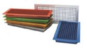 Двухрядные решетки ВР-КВ с клапаном расхода воздуха. Конструкция изделий предусматривает как стандартное крепление с помощью винтового соединения, так и скрытое крепление с помощью защелок (только для решеток с посадочными размерами меньше чем 600 × 600).
