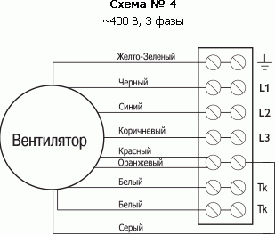 Однофазный двигатель вентилятора ТКН защищен от перегрузок термоконтактом встроенного типа с автоперезапуском, трехфазный – имеет более обширную защиту, он может быть соединен с регулятором скорости или с модулем управления. Уровень защиты двигателя отвечает классу IP 44 или IP 54, клеммной коробки – IP 54.
