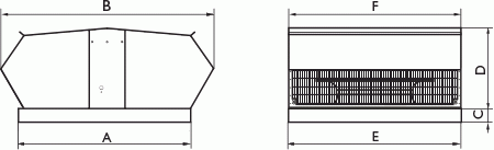 Выброс воздушного потока в серии ТКН происходит только в горизонтальном направлении, внешние отверстия устройства ограничены защитной решеткой. Монтаж вентилятора крышного типа серии ТКН производится только в горизонтальном виде.